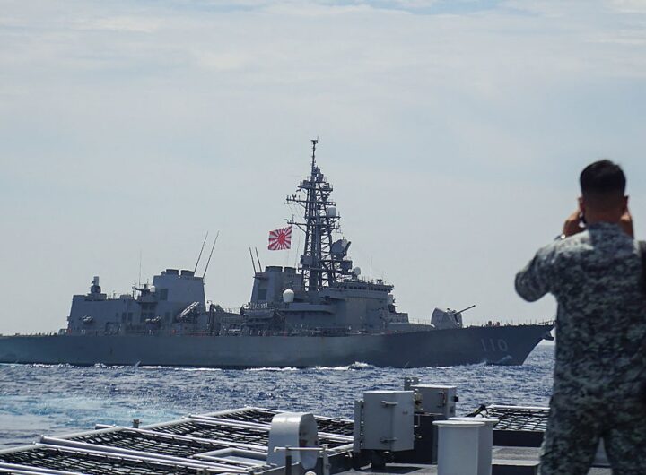 На військово-морській базі США у Каліфорнії відбулася церемонія модернізації есмінця морських Сил самооборони Японії для запуску американських...